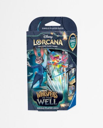 Disney Lorcana Starter Decks inneholder alt en spiller trenger for å spille rett ut av boksen! Dette dekket kommer med Judy Hopps og Robin Hood (Sapphire & Steel).