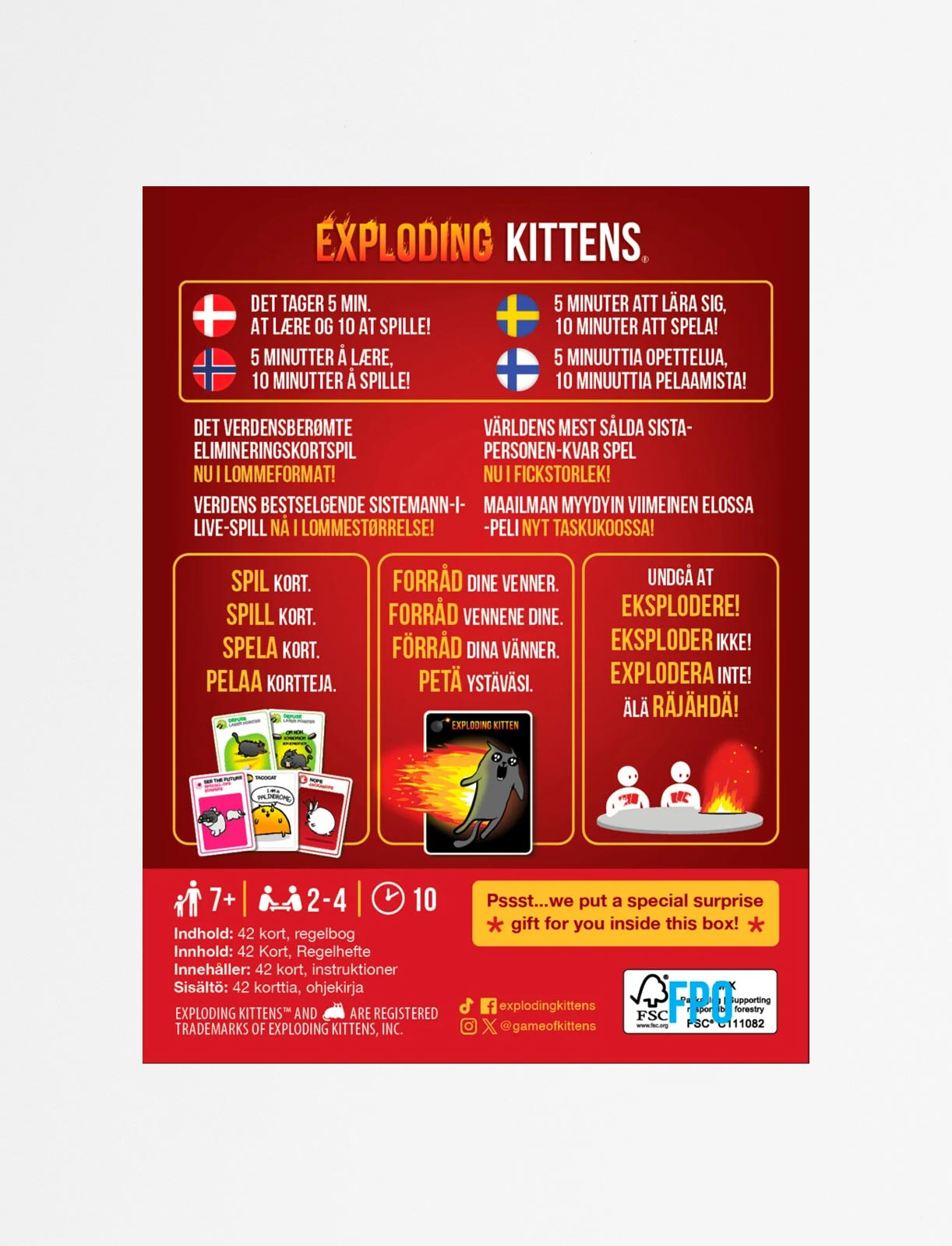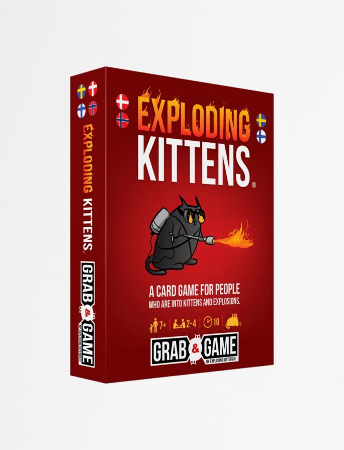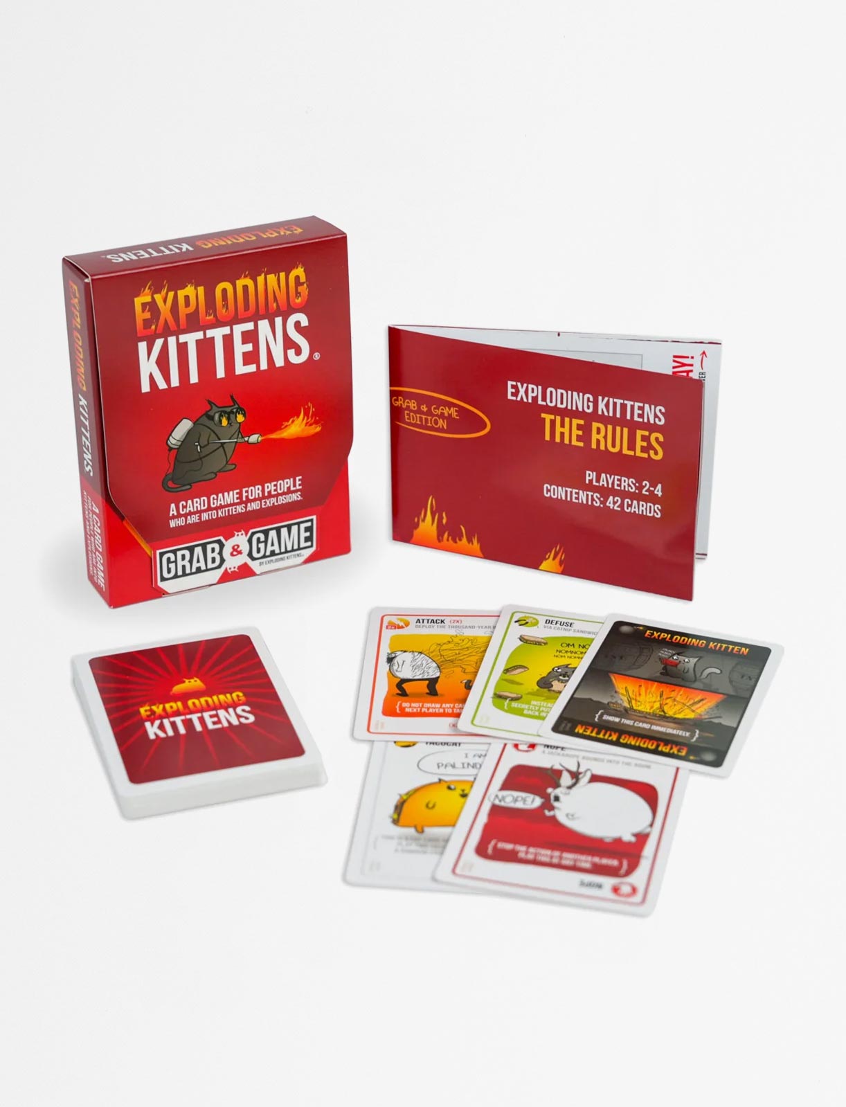 Exploding Kittens Grab & Game er et elimineringskortspill i reisevennlig lommestørrelse, perfekt til å ta med på tur!