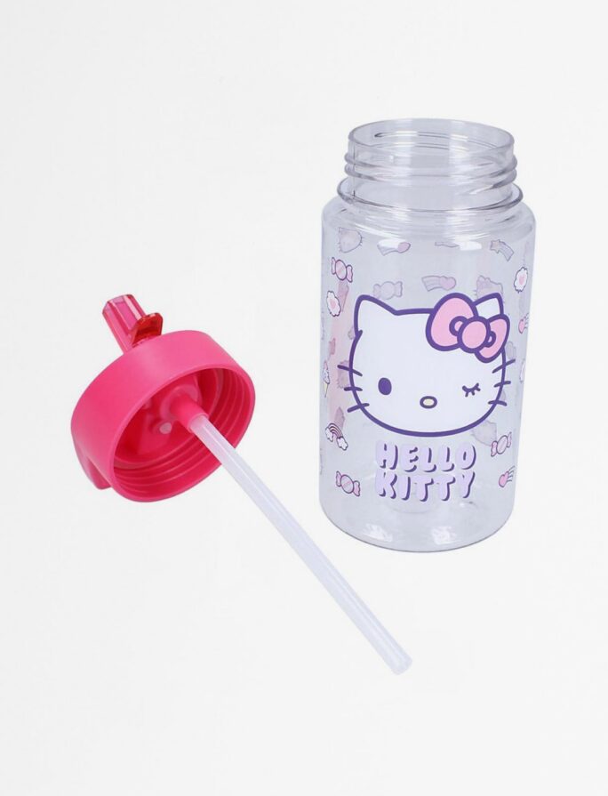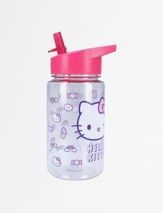 Flaske med sugerør med illustrasjon av Hello Kitty!