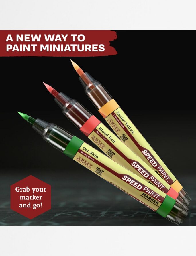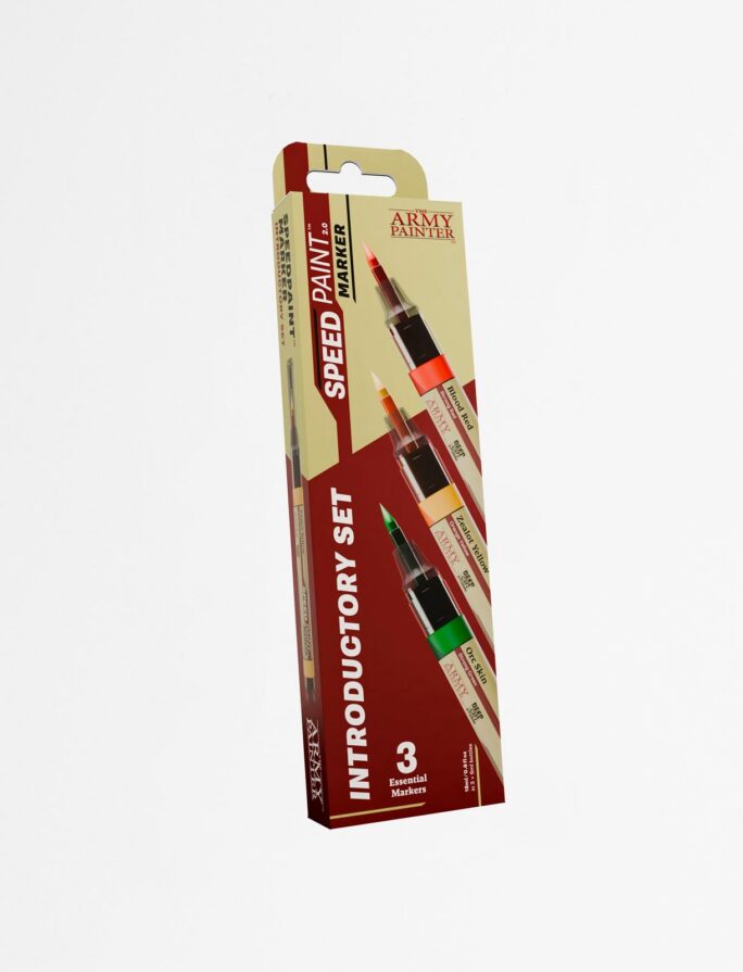 With Speedpaint Markers, you hold an entire hobby in your hands. Experiment with this Introductory Set and push the boundaries of your hobby. Try Speedpaint Markers with 3 ultra-rich colours that make painting easier than ever. Without a brush or palette, you can switch between colours in a heartbeat and take your hobby wherever you go. Our innovative Felt-Tech tip technology combines precision and even pigment distribution—cover large surfaces or paint the smallest details. Rethink your hobby.
