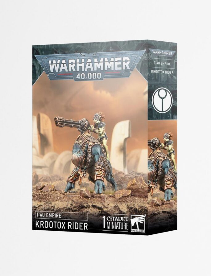 This multipart plastic kit builds one Krootox Rider, an elder Kroot kin-beast with a gunner perched atop its broad back. The Krootox carries one of two heavy weapons into battle – either a rapid-fire repeater cannon that can punch through armoured troops or even light vehicles with a barrage of charged rounds, or a tanglecannon that launches explosive bolas to shred entire hordes. When the fighting draws too close, it crushes foes into pulp with its massive, muscular fists.