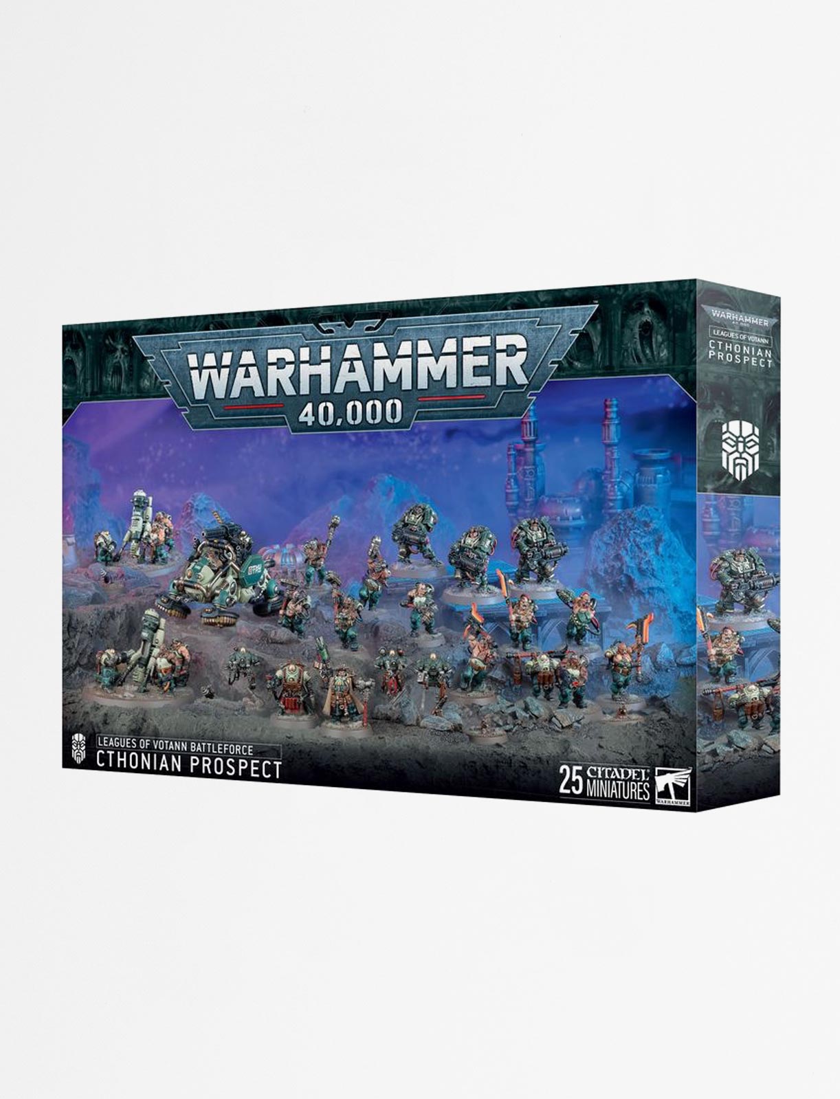 The galaxy is full of resources to be claimed, and the Leagues of Votann dispatch their Kinhosts to harvest them for the continued survival of their ancestor cores. A Cthonian Prospect is the name given to a delegation of Kin from the Cthonian Mining Guilds sent out to find and extract these resources, often while fending off vicious enemies. A Brôkhyr Iron-master with Ironkin Assistant and three E-COGs leads the band, which contains a unit of three Brôkhyr Thunderkyn and two Cthonian Earthshakers that use their ranged weapons as effective deterrents.