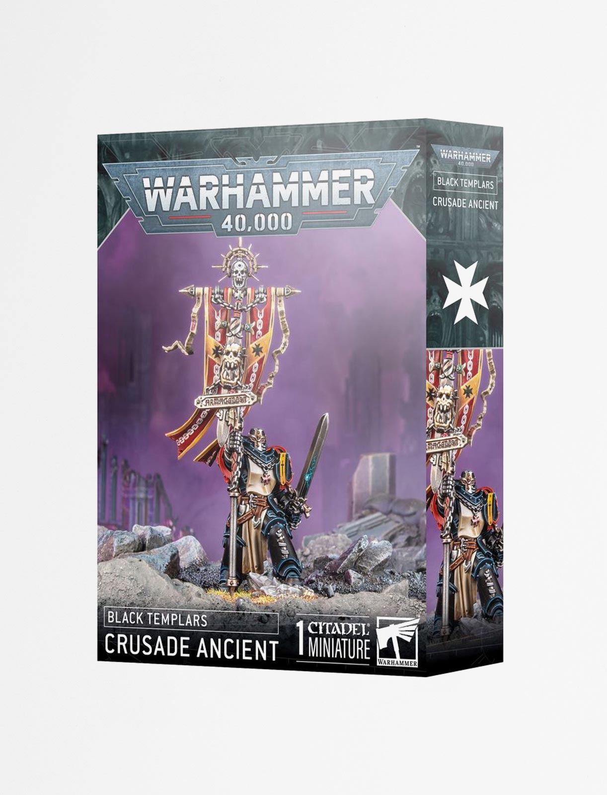 Crusade Ancients are veteran wardens and honoured warriors of exceptional resolve and determination who carry icons and sacred standards into battle. They raise high the tapestries depicting the crusade’s victories and the God-Emperor’s glory, inspiring their fellow Black Templars to greater heights of weaponised hate.