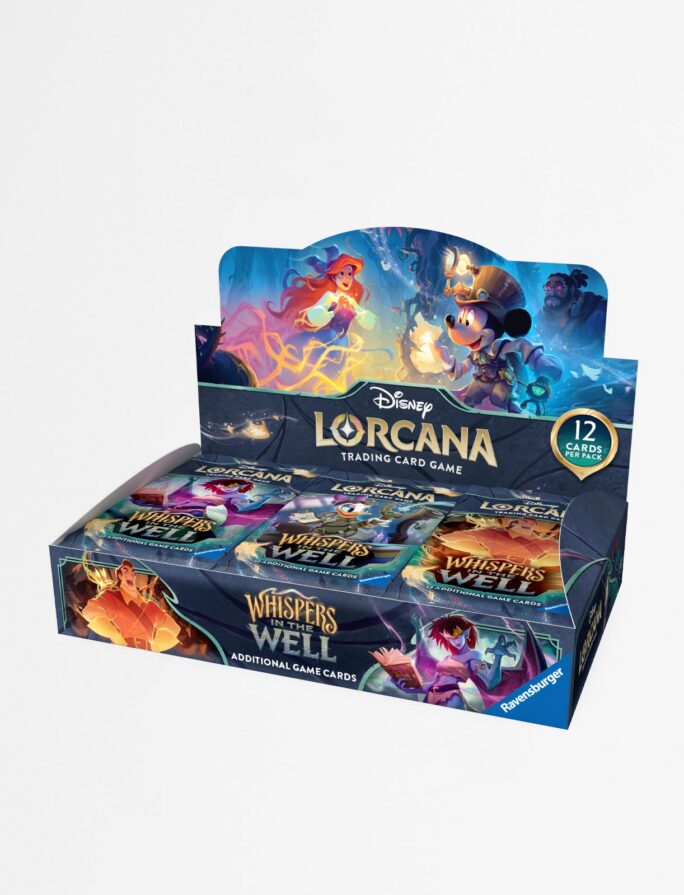 Booster display med 24 boosterpakker fra Lorcana: Whispers in the Well-utvidelsen hvor hver pakke har 12 kort!