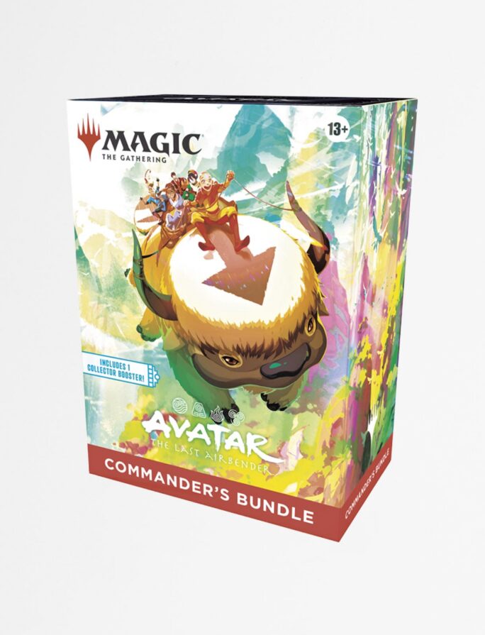 This masterful bundle unites all the greatest elements for Avatar: The Last Airbender fans, boasting nine Play Boosters, gorgeous full-art basic lands, and a Collector Booster packed with rares and/or mythic rares, foils, and other stylish surprises. But that’s not all—Commander players will find Avatar-themed staples Sol Ring, Swiftfoot Boots, and Arcane Signet, plus two classic spells from a selected list of ten that are perfect for any commander’s arsenal.