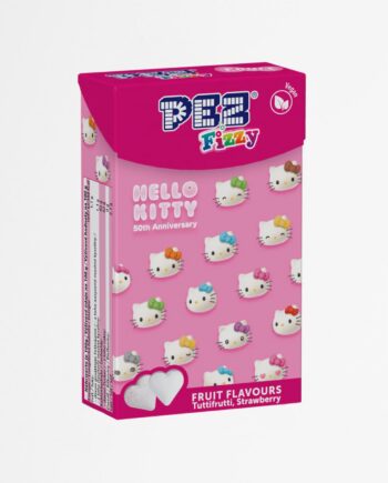 PEZ-pastiller formet som Hello Kitty med fruktig smak av tuttifrutti og jordbær!